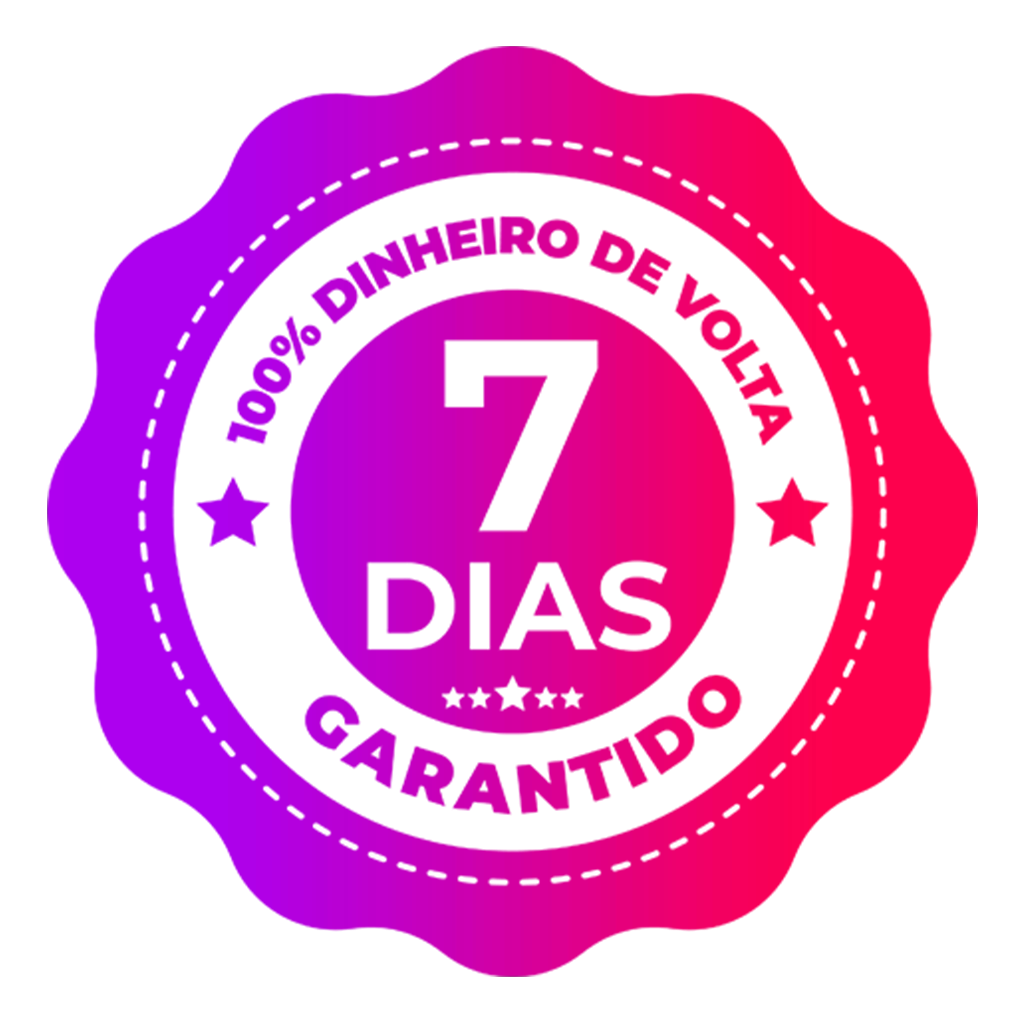 Você adquire agora o acesso completo aos nossos produtos pela condição especial de e tem 7 dias para avaliar. Se por algum motivo você achar que este material não é pra você, ou que não vale o investimento, basta me enviar uma mensagem que devolvo integralmente seu dinheiro. Agora a decisão de começar é sua!